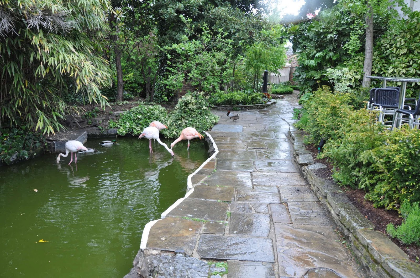 Flamingosarna är riktiga Roof Gardenkändisar. Tror de hade lika roligt åt oss.